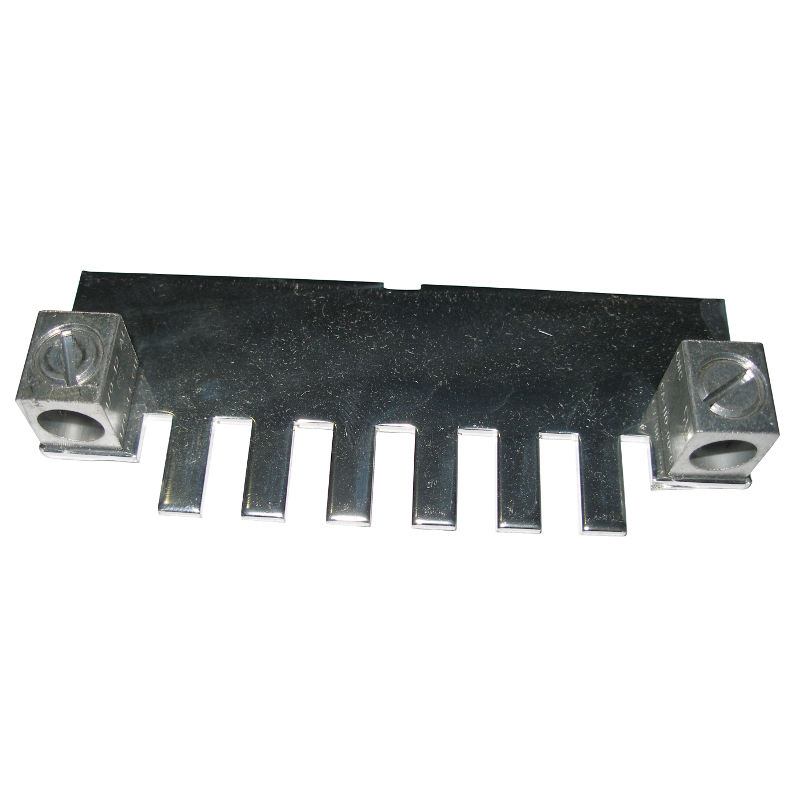 The MNPV6-BREAKER-BB is a .093″ thick copper bus that has six fingers spaced at 1/2″ (13mm) intervals. Two box lugs are provided to accommodate 14-1/0 AWG wire. For use with the MNPV6 combiner box.